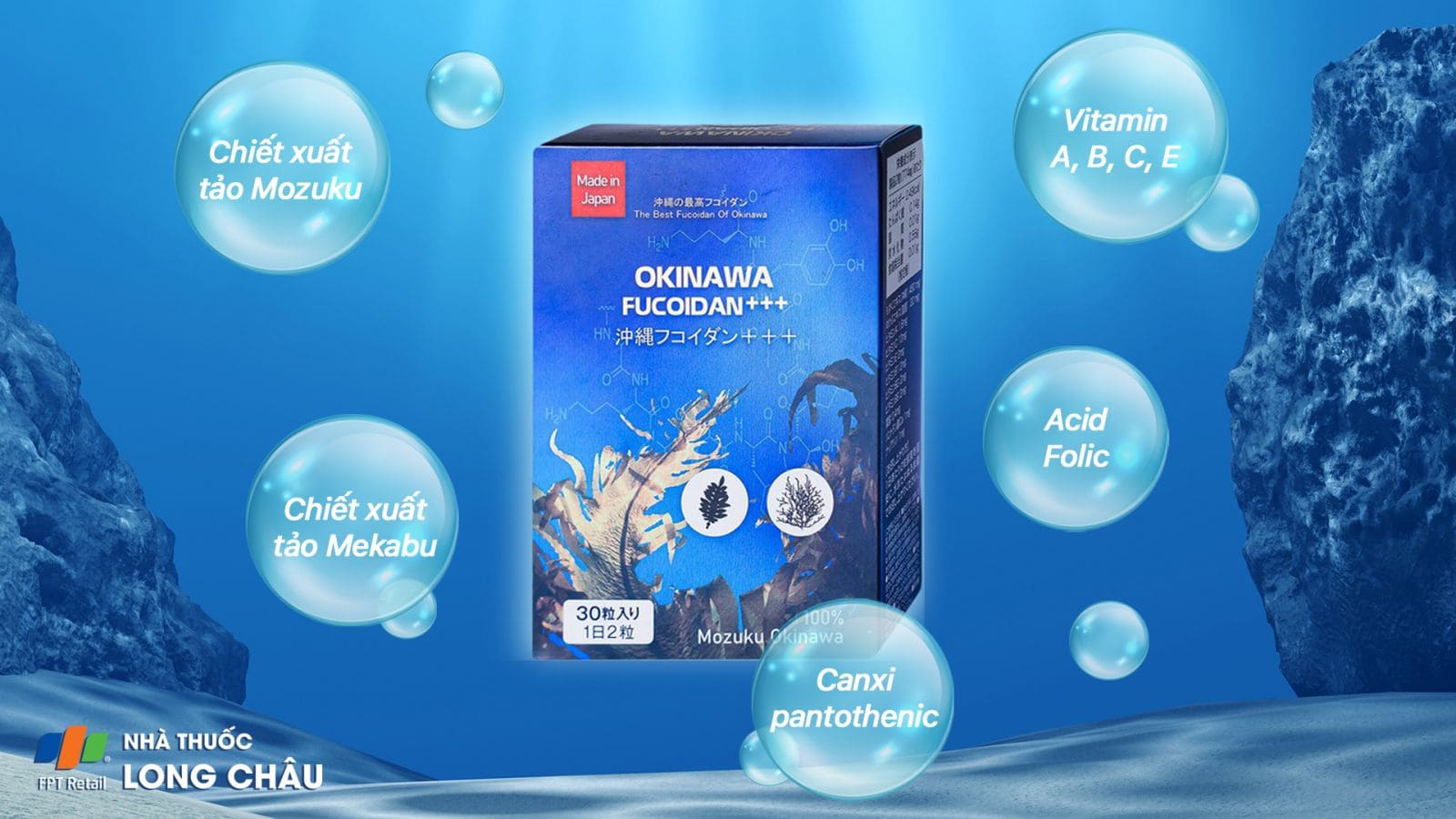 Dưới đại dương mênh mông, có rất nhiều loại tảo đã được tìm thấy. Trong đó, Mozuku và Mekabu là hai loại tảo giàu dưỡng chất và fucoidan hàm lượng cực kỳ cao. Okinawa Fucoidan +++ chiết xuất hoàn toàn từ 2 loại tảo này, kết hợp thêm vitamin và khoáng chất tăng cường hiệu quả bảo vệ sức khỏe.